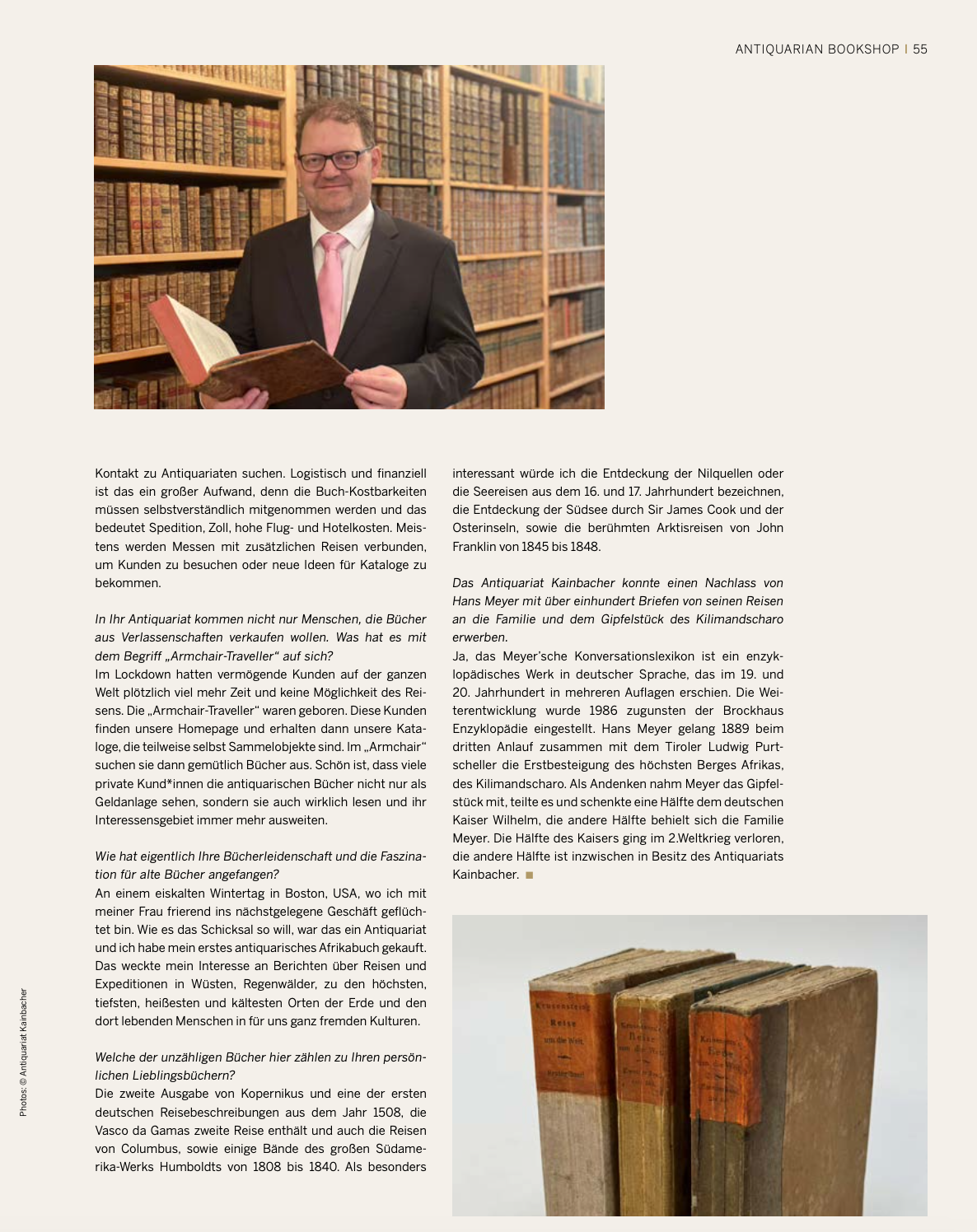 Das Antiquariat Kainbacher ist auf seltene alte Bücher, Manuskripte und Landkarten zu den Themen Reisen, Expeditionen, Naturwissenschaften und Erforschung der Erde spezialisiert.